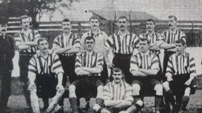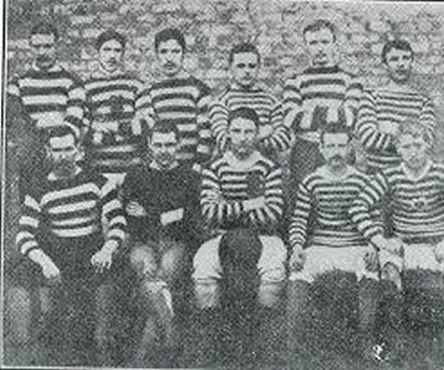 The photograph shows the team from 1894-95 when the iconic black and white striped shirts were worn for the first time.