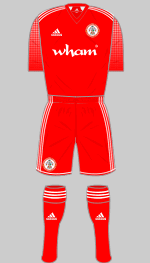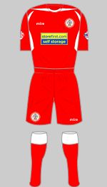 The following season a new crest was introduced, which placed the traditional crest within a roundel embroidered with the club's name. This appeared only on the black away kit in 2010-11, as the club retained the red and white home strip introduced the previous November (with the old version of the crest).