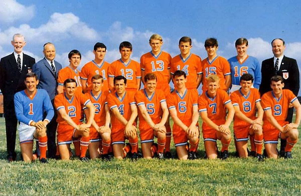 Since I added a crest history of Dundee earlier this month it seems only fair to do the same for Dundee United. In the course of my research I came across this image of United playing as Dallas Tornado in the United Soccer Association tournament in 1967. Two years later the bosses' wife persuaded the board to modernise the team's image and adopt an all-orange strip in domestic competition.