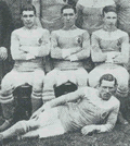 The good people at Frickley Museum have sent us this photograph to see if we can identify the team, which probably played in West Yorkshire. The style of clothing worn by the officials and the length of the players' knickers place this firmly in the period 1900-1914. The team strip of white shirts and dark knickers was very common and is no help but the crest is intriguing as very few teams wore one at the time. Anyone?
