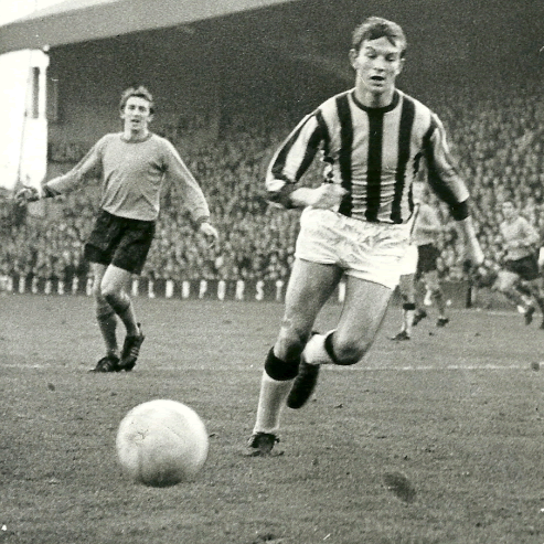The photograph is from 1968-69 and features Len Allchurch receiving a presentation plate to mark his 500th senior appearance.