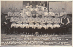 The photograph is of the Brentford team from 1914-15 and shows them wearing the yoked tops that were popular at the time. Curiously there are 18 players in the picture and several of them are wearing reversed jerseys. Presumably they did not have enough blue/yellow tops to go round the squad so some players had to wear their change tops.