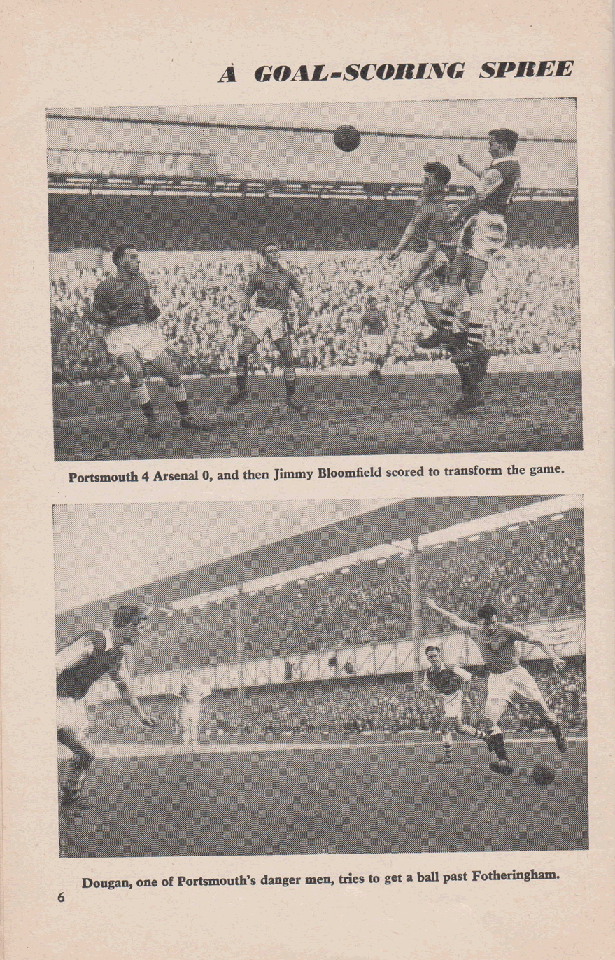 This photograph, submitted by Dick Waite, shows Portsmouth playing Arsenal at Fratton Park in March 1958. The point of interest is that Pompey are wearing black socks with white turnovers rather than the plain red ones adopted in 1947. I haven't been able to find any other action photographs to corroborate this but we do know that a month later the team wore hooped socks when they played at Luton Town, which would make sense if the change was made to avoid a clash with the home team's socks.