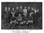 drawn from pupils and masters from Queen Elizabeth's Grammer School (Cranbrook) and a scratch team captained by Mr T de T Croft. It is known that the players standing second from the left is Algernon Haskett-Smith and, according to the report, two of his brothers also appeared in the side. Simon believes the player wearing a Kent FA cap next but one to Algernon is Walter Parry Haskett-Smith, an eminent rock climber who wrote an important book on the subject. Algernon, who appears to be wearing an Oxford University shirt, died in a shooting accident two years after this photograph was taken.
