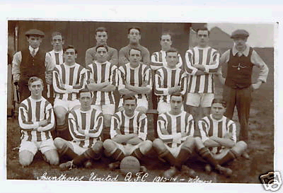 Here is an intriguing team photograph of Brighton & Hove Albion from 1914-15 sent in by Paul Galiford, which gives us an insight into the economics of football in this period. What we see is that some of the players are wearing new, collarless shirts while others have contrasting buttoned crew necks, the style worn in the previous two seasons. A dozen football shirts would have cost between 38/- (£286 at today's prices) and 84/- (£6330), a considerable sum that clubs of modest means would struggle to afford. In Brighton's case there were not enough of the new tops to kit out both the first team and the reserves so some players are pictured wearing jerseys from the previous season.