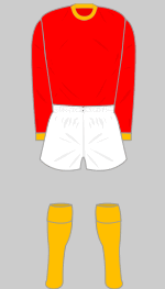 After the First World War, Bradford reached the FA Cup quarter-final in 1920 but were relegated the following season. Worse was to come as the club dropped into Division Three (North) the following year. In 1928 they won the Third Division (North) championship and regained their place in the Second Division. In 1924 Bradford reverted to red, amber and black while adopting white shirts with a red, amber and black band as change colours, a kit identical to that worn by Bradford Northern RLFC. These were certainly worn as a first choice strip in 1925-26 and again in the mid-1930s.