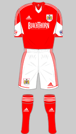 At the beginning of the 1994-95 season, a simplified version of the Bristol coat of arms once again became City's official crest, appearing with and without a white shield background. The team were relegated to the third tier at the end of the season. They went back up in 1998 but were immediately relegated. After a struggle to avoid