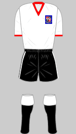 In 1957 the team adopted the new continental-style strip with red trim on the shirt. Between 1962 and 1967 the team sometimes turned out in white shorts when playing sides wearing black