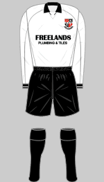 Their first sponsored shirt appeared in 1982 with the name of a local sportswear supplier (who provided the kit) on the front. The crest was restored in 1990-91.