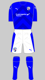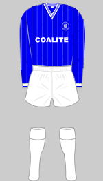 Chesterfield followed the trend by adopting crew neck shirts and dropping the traditional crest in the Sixties but in 1968 the borough council asked the club to adopt their new coat of arms. Printed in five colours, the original design was too large to fit on the shirts so a second version was hastily created. The result, worn on a white patch, was poorly drawn and off-centre and it was dropped in 1970.