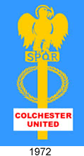 For the 1972-73 season the management decided to relaunch the club with a new badge (a Roman eagle standard), new nickname (The Eagles) and an all-white kit worn with red boots. The season was a disaster - the manager resigned and Colchester had to apply for re-election. The re-introduction of blue shorts and stockings mid-way through the season failed to stop the rot.