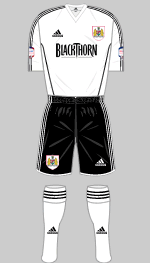 Once again Boro have made a virtue out of necessity by choosing a kit from the Adidas catalogue that bears a passing resemblance to an old favourite, in this instance the iconic chest band introduced by Jack Charlton in 1973. When required to change, a strip in two shades of blue with white trim is available and the black away strip from last season serves as third choice.