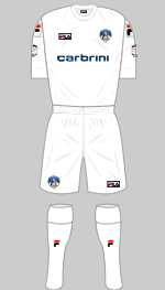 Only the large Fila logos detract from Latic's new all-blue home kit with discrete gold trim, which has the new club crest (worn on the away strip last time out). Fila and Carbrini are both brands belonging to JD Sports. A new away strip is introduced, a re-creation of a colourful favourite from the Sixties. the white strip was worn just once, at Shrewsbury in April.