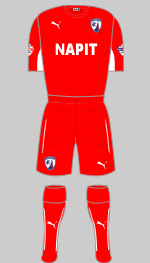 Crewe have updated their strips while retaining the basic combinations of red shirts/white shorts and all blue as the alternative. Black is added to the home strip as an accent colour while light blue replaces white on the change strip. Quite nice, we think.