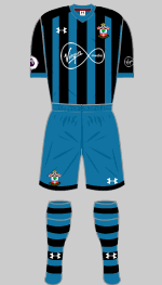 Under Armour have looked to the very popular early Eighties shirts of the Lawrie McMenemy, Kevin Keegan and Alan Ball era. There is fine black and red edging to the white shirt panel (which carries over on to the back) and shorts, which is perhaps a bit too fussy but otherwise this is a very good effort. The teal and black alternative is totally original.