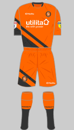 All-orange is a new look for Luton who were promoted last season. The Puma form stripe retains the element of navy blue but is a very dark shade. The white change strip looks well with orange trim and the third kit features a fade effect in the stripes.