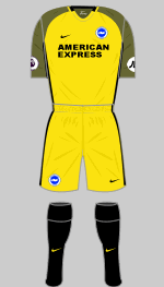 Very broad stripes make for a novel look and it's ten years since the team wore white shorts so you would be excused for not recognising them. The change kit is in the colours of the old Brighton United club that was formed in 1898.