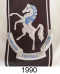 From 1990 the word "Gills" was cleverly incorporated into the horses mane although, as can be see from the example below, this was applied as a cheap plastic heat-transfer that