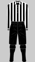 white shirts. This met with such an outcry that it was replaced by the black and blue hooped tops originally intended as a third strip.