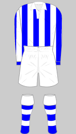 of blue shirts with white knickers which a fixture card later clarified as being "light blue and white." Photographs suggest that this was an intermediate shade between pale Cambridge Blue and conventional mid-blue and this seems to have been worn until 1937 or thereabouts.