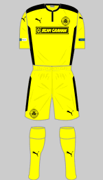 Dungannon play at Stangmore Park in County Tyrone and usually wear all blue. Their change strip is yellow and black (it was yellow and blue last season).