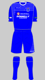 Glenavon won the Irish Cup for the sixth time last season, their first senior honour since 1997 (their previous cup win). Unfortunately they were knocked out of the Europa league by FH of Iceland in the first qualifying round. Their strips appear to be unchanged.