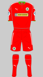 Coleraine finished in a very creditable third place and reached the Irish Cup final to boot. Their reward was a place in the Europa League but a humbling 7-0 defeat in Norway at the hands of FK Haugesund in the first leg of their qualifier brought them back to earth with a resounding bump. With hindsight, introducing a third kit specifically for Europe was a tad over-optimistic and by a cruel irony, it clashed with Haugesund's colours.