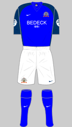 while the white and red strip seems to have been retained as a third option. It was worn, for no apparent reason, at Ballymena in the Crues' opening league match.