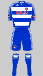 The team's strips are slightly modified from last season: the crooked hoops are replaced by conventional ones and the third colour is used more sparingly.