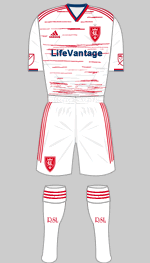Salt Lake reached the Conference semi-finals last season. Their change kit has been updated. It is again mainly white but it now has unpleasant scratchy lines across the chest.