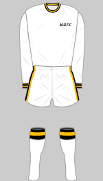 In 1975 a cartoon caveman (name of Winstone - boom-boom) featured on the right-hand side of player's shirts while "MUFC" appeared in script on the left. This nonsense was replaced in 1978 when the traditional crest was reinstated followed a few years later by the earler cypher.