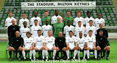 Crests are the property of Milton Keynes Dons FC. Photograph courtesy of The MKDSA Archive.