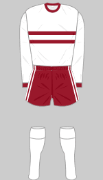 The 1960s proved to be a remarkable decade for the club. After floodlights were installed at the County Ground in October 1960, photographs were widely published showing the team in an all white "floodlights strip" decorated with a claret band on the shirt. Peter Stevenson has established that this outfit was not worn at home except in friendlies and testimonials and we must conclude it was their change strip.
