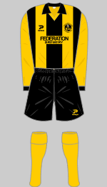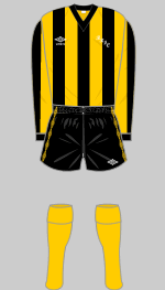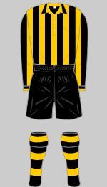 Berwick's original colours were registered as "white jerseys, hose and knickers" although it is doubtful that many of the players would have been able to provide white socks. These were changed in 1885 to "orange and black," which later became "gold and black."