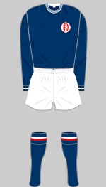In 1968-69 the colours of the monogram were reversed and two seasons later, rendered in red on a white disc when red trim was reintroduced to the strip.