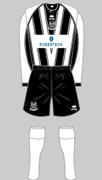 As 2023 marked Elgin's 125th anniversary, the kit worn in 2022-23 was supposedly based on their first ever strip. Unfortunately this rather missed the mark with stripes that were too narrow, white shorts and hooped socks (black knickers and socks were worn in 1893).