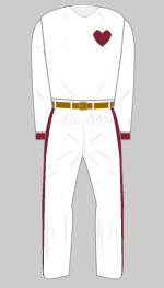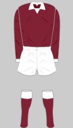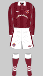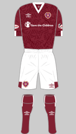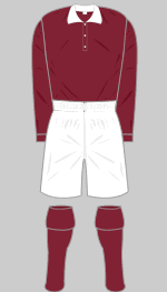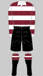 Players originally turned out in all white shirts and trousers with maroon trimmings and a heart sewn into the shirt. In 1876 they adopted red, white and navy hoops with the letters MFBC (Midlothian Foot Ball Club), the colours of the St Andrews club which they had absorbed, These were unpopular with the players, presumably because they were more expensive than the plain jerseys available from local gentlemen's outfitters, so in 1877, all the players' shirts were dyed dark red (although the old hoops showed through) and the team became known as "The Maroons." A report in The Scotsman states that a scarlet stripe was worn down the sides of the players' knickers.