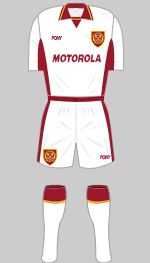 The first record of Motherwell wearing a change kit comes from The Motherwell Times (5 August 1893) which recorded that the team would turn out in a "new rigout - maroon shirts and sateen knickers." The team were still referred to as "The Blues" in the press at the time so we can be certain this was a change strip.