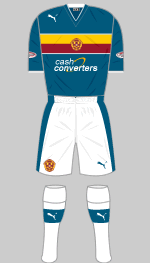 When Motherwell first adopted claret and amber jerseys in 1913 they retained their old blue tops for colour clashes. These were only needed once each season for the home game against Hearts. They were finally retired in 1918-19 when a reversed version of their yoked jerseys was adopted.