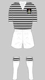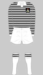As soon as the club was formed a small sub-committee was charged with procuring "such badges etc that each member be supplied with two of different colours...with the object of the player wearing the particular colour of the side he was on." Alas details of the colours and badges involved are lost so our graphic can only suggest what the players might have worn. It is, however, known that most (but not all) of the players sported blue guernseys. On 7 July 1870 the club's rules were amended and now included a proviso that no member could take part in a match unless in the official uniform of guernsey and cowl, which was to be reversable (red or blue). Two years later blue and white striped stockings became part of the uniform. The first official international match between England and Scotland took place on November 30 1872 in Glasgow. All eleven Scottish players came from Queen’s Park who turned out in their club kit. Navy and white are the national team’s first choice colours to this day.