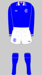 In 1922 Rangers adopted white collars on their shirts to complement the black stockings with red tops seen the previous season. Remarkably, this outfit remained completely unchanged for almost 40 years.