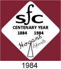 To mark the club's centenary in 1984 a rather curious crest was adopted. More a patch than a badge, it included the name of their sponsor, Hogan Sports who supplied their kit at the time. This was worn for the first two months of 1984 and reappeared at the start of the following season and was worn until the end of December 1984.