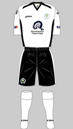 Ayr's new home strip is plain white, with no trim at all apart from the usual logos and very smart it looks. The last time the club opted for all-white, the manager stepped in to insist on traditional black shorts so we will have to see if history repeats itself. Black embroidery has been added to the club crest to make it stand out better.
