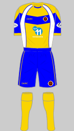 The home shirt is unchanged but blue shorts replace last season's black sets, which is a distinct improvement. The away strip is again in an unusual colour combination and a very basic red strip is also available, although it is hard to see when this might be needed.