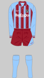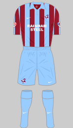 For the 1994-95 season a competition was held in local schools and colleges to design a new crest. The winner, designed in the finest traditions of Soviet Realism, depicted a fist clutching a girder, celebrating the town's long association with the iron and steel industry. This crest divides supporters, with traditionalists yearning for the reintroduction of the circular, 1982 version.
