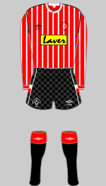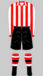 Northern League. In those days the team usually wore white shirts. A crest appeared in the 1891-92 season that consisted of the badge of Sheffield, featuring three sheaves of wheat, apparently a typical heraldic play on words, Shef-field being interpreted as "the open space by the River Sheaf." In 1891 they turned out in red and white "butcher's stripes" and it was not until 1894 that the familar 2" striped shirts appeared for the first time.