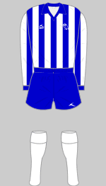 The following season marked Wednesday's 150th anniversary and a special set of strips was commissioned. Curiously the first choice shirt was a reproduction of the admittedly smart version worn 1965-72, one of the rare periods when the club departed from their traditional stripes. These were manufactured in-house with an unknown brand, Elev8. Elev8 Clothing Ltd and Elev8 Energy Drink Ltd were registered with Companies' House in August 2017 with Wednesday's chairman, Dejphon Chansiri, being the sole director.