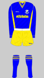 were adopted. These included a crest in 1960-61 that appears to have been based on the central badge of the town's coat of arms. The full coat of arms was worn for a couple of seasons in the middle of the decade when navy and white became the team colours.