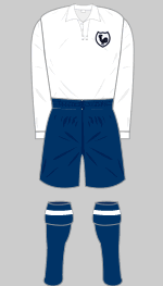 In 1961, Bill Nicholson, a member of the 1951 championship team and now manager, led Spurs to the first League and FA Cup double of the twentieth century. A year later, Spurs won the FA Cup again and in 1963 they became the first British team to take European honours when they won the European Cup-Winners' Cup. Inevitably this glorious side, featuring Jimmy Greaves, Danny Blanchflower, Dave Mackay broke up. Spurs wore all-white strips in friendly games against Racing (1956-57), Moscow Torpedo (1959-60) and against Sheffield Wednesday at Hillsborough in 1959-60. During the 1960s Bill Nicholson began the tradition of wearing all-white strips in European competition and in the FA Cup. While it is widely reported that this was a tribute to the great Real Madrid team, there is no evidence to support this and it may simply be that all-white was more visible under floodlights. (*The first occasion that all-white was worn in the Football League was against Wolves in March 1959.)
