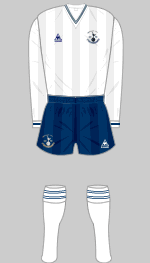 The short sleeved shirts worn since 1959 were replaced by long sleeved versions with crew necks for the European Cup Winner's Cup match with Rangers on 31 October 1962 and these became the team's first choice from November 1962.